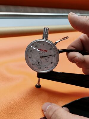 1.1-1.2mm*1.4m PVC leather cat scratching resistance lichi grain orange with fleece backing.